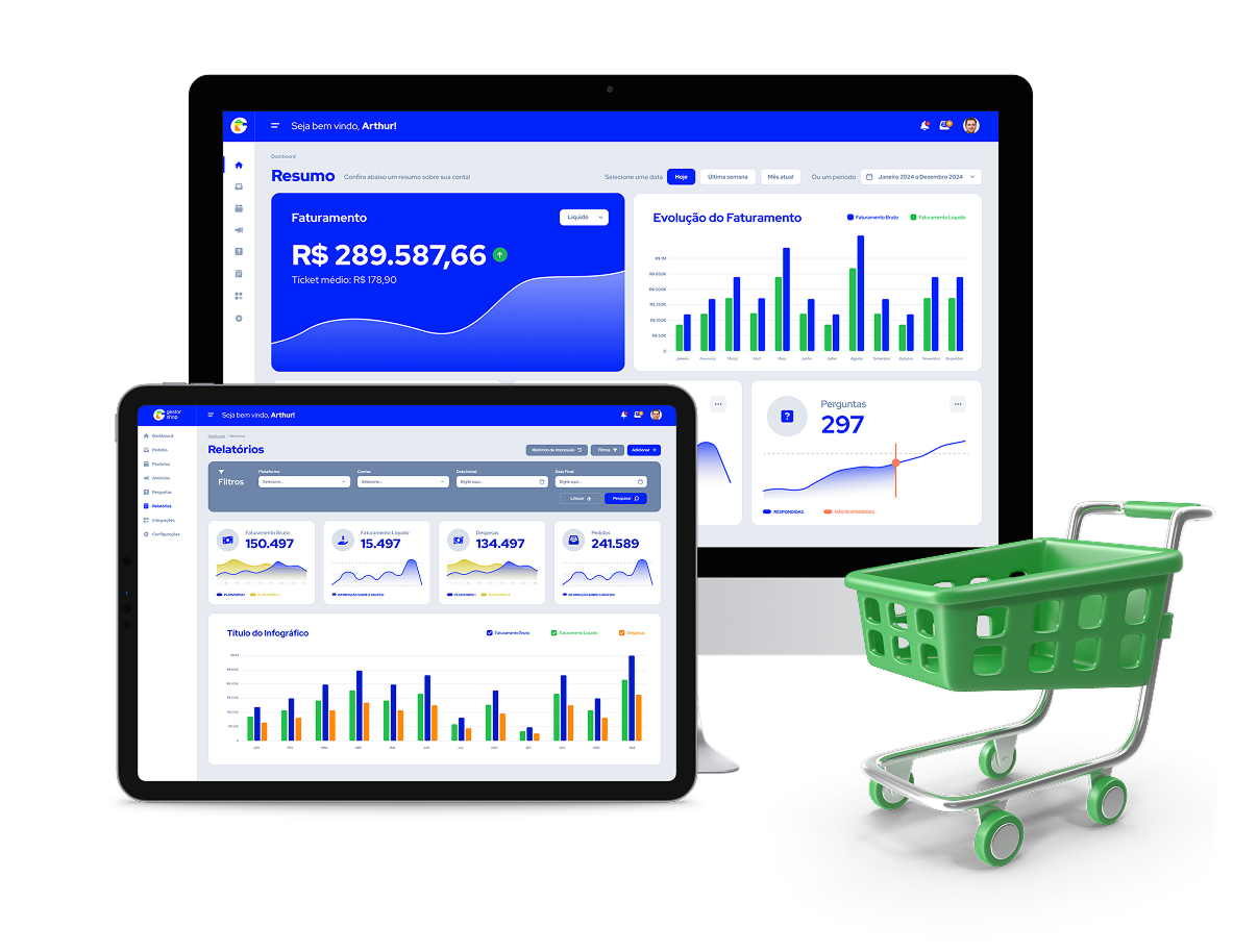 Controle pedidos, estoque e financeiro de múltiplos marketplaces em uma única plataforma, centralizando todas as operações em um só lugar para maior eficiência e organização.